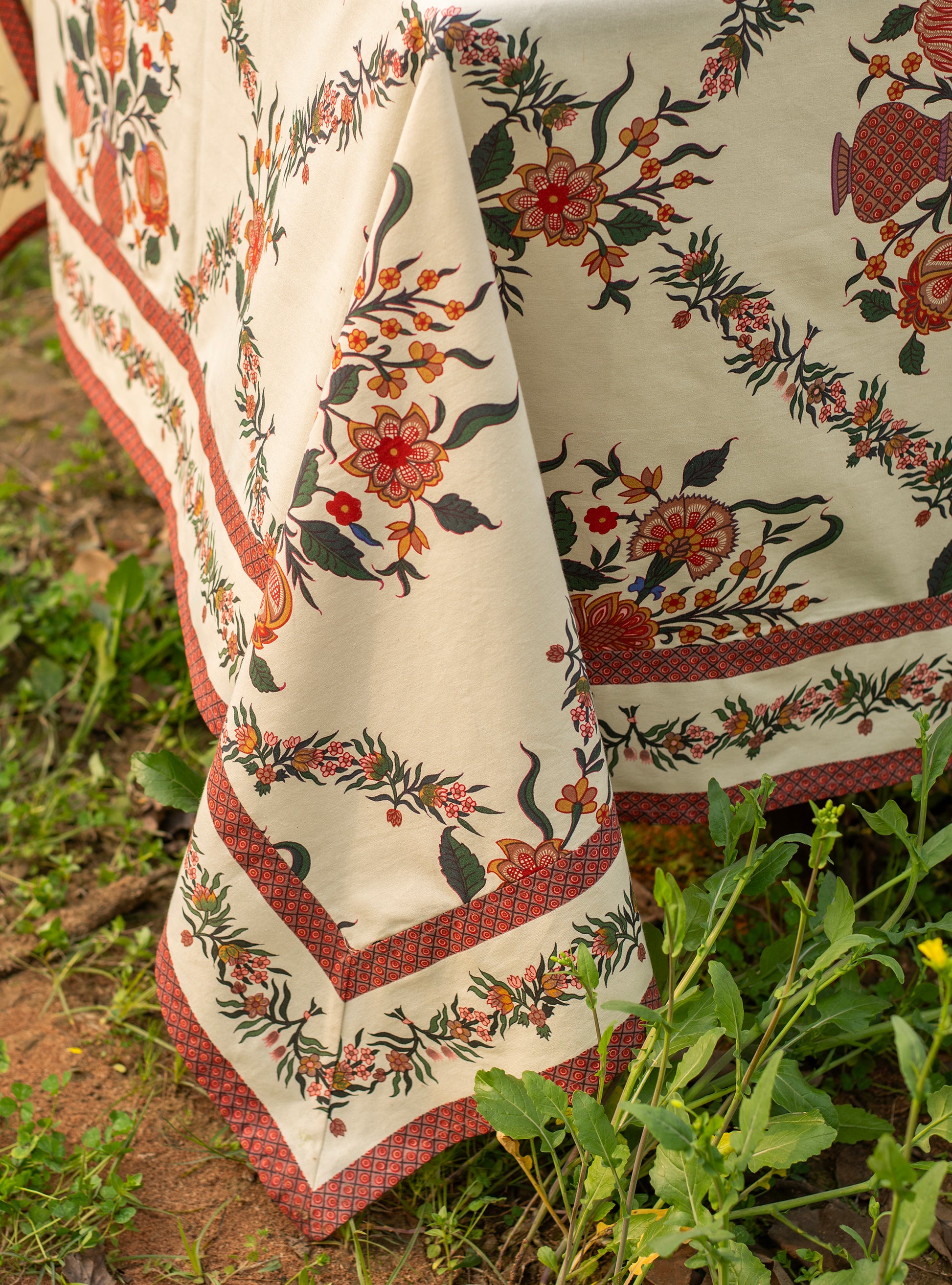 Printed Table Cloth Extra-Border : Gamla Ivory Sheeting