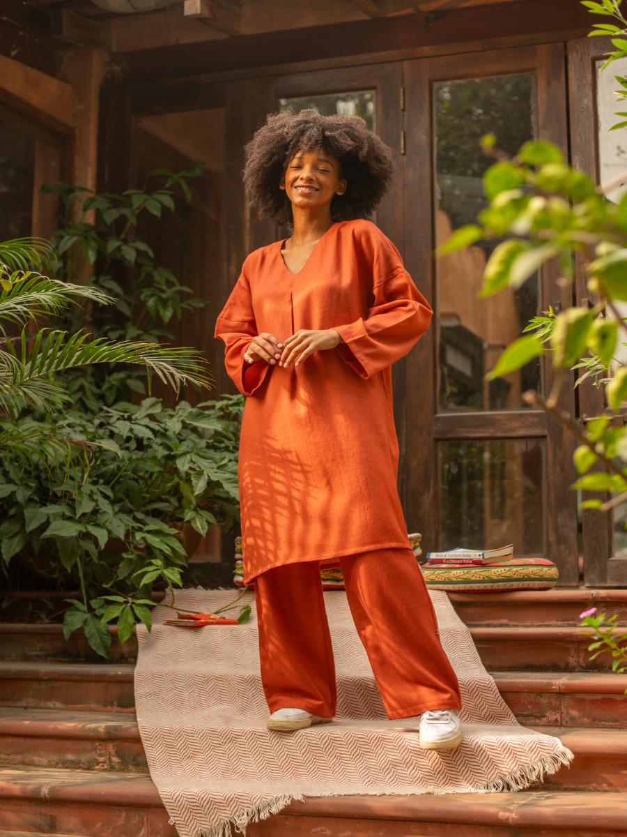 Phiren With Belt : Solid Paprika Twill Wool