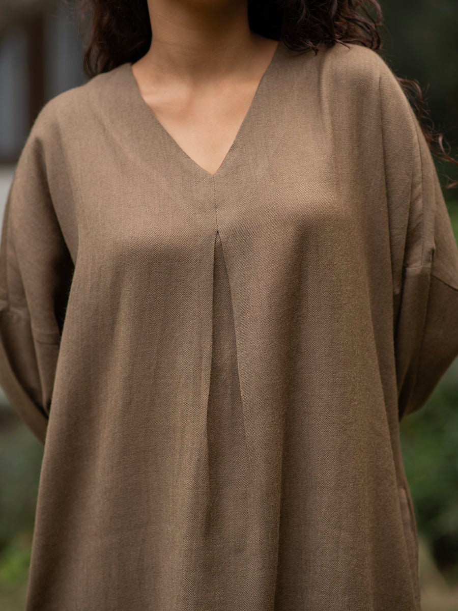 Crafted from premium wool, this khaki phiran exemplifies traditional craftsmanship with contemporary appeal. The solid weave provides exceptional warmth and durability, making it ideal for layering through cooler seasons. Its classic neutral tone pairs effortlessly with various wardrobes, while the natural fiber breathability ensures comfort throughout the day. The structured silhouette offers timeless elegance, whether worn casually or dressed up for formal occasions. A versatile investment piece that combines heritage design with practical everyday wearability.