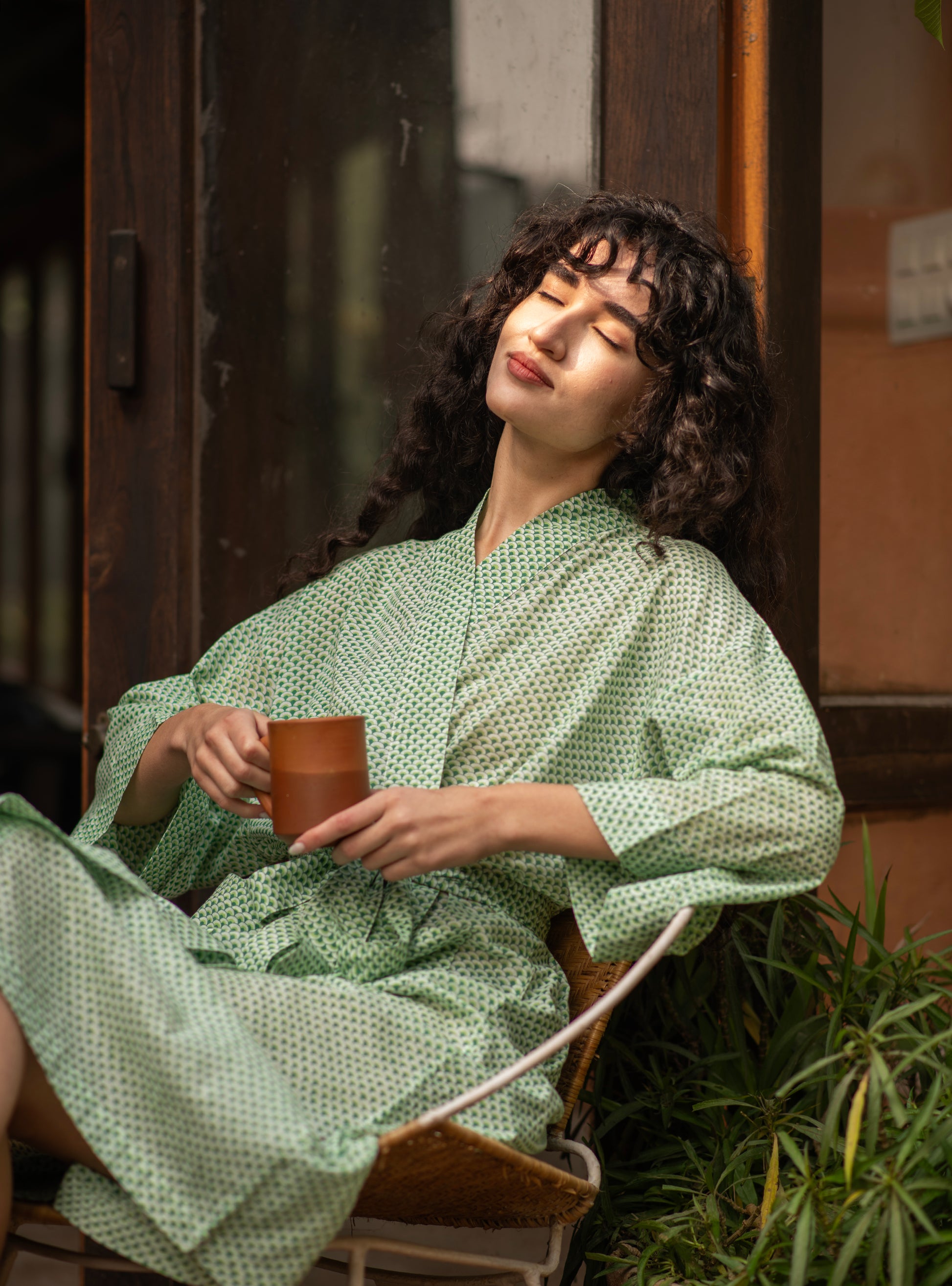Crafted from lightweight voile fabric, this scales-patterned robe delivers effortless elegance with its fluid drape and breathable construction. The green colorway offers versatile styling for layering or standalone wear, making it an essential piece for warm-weather wardrobes. Perfect for those seeking refined comfort without compromising on design sophistication.