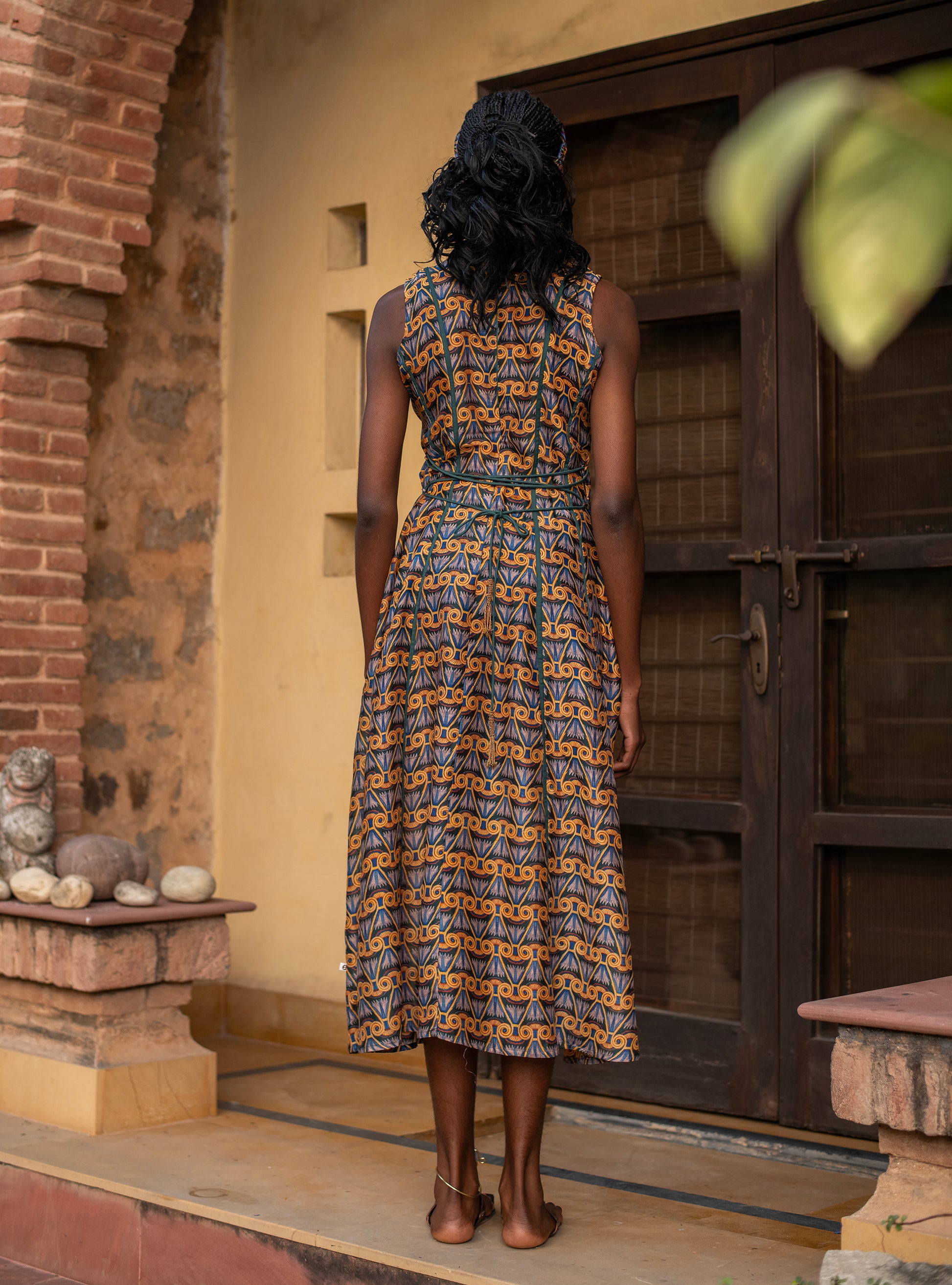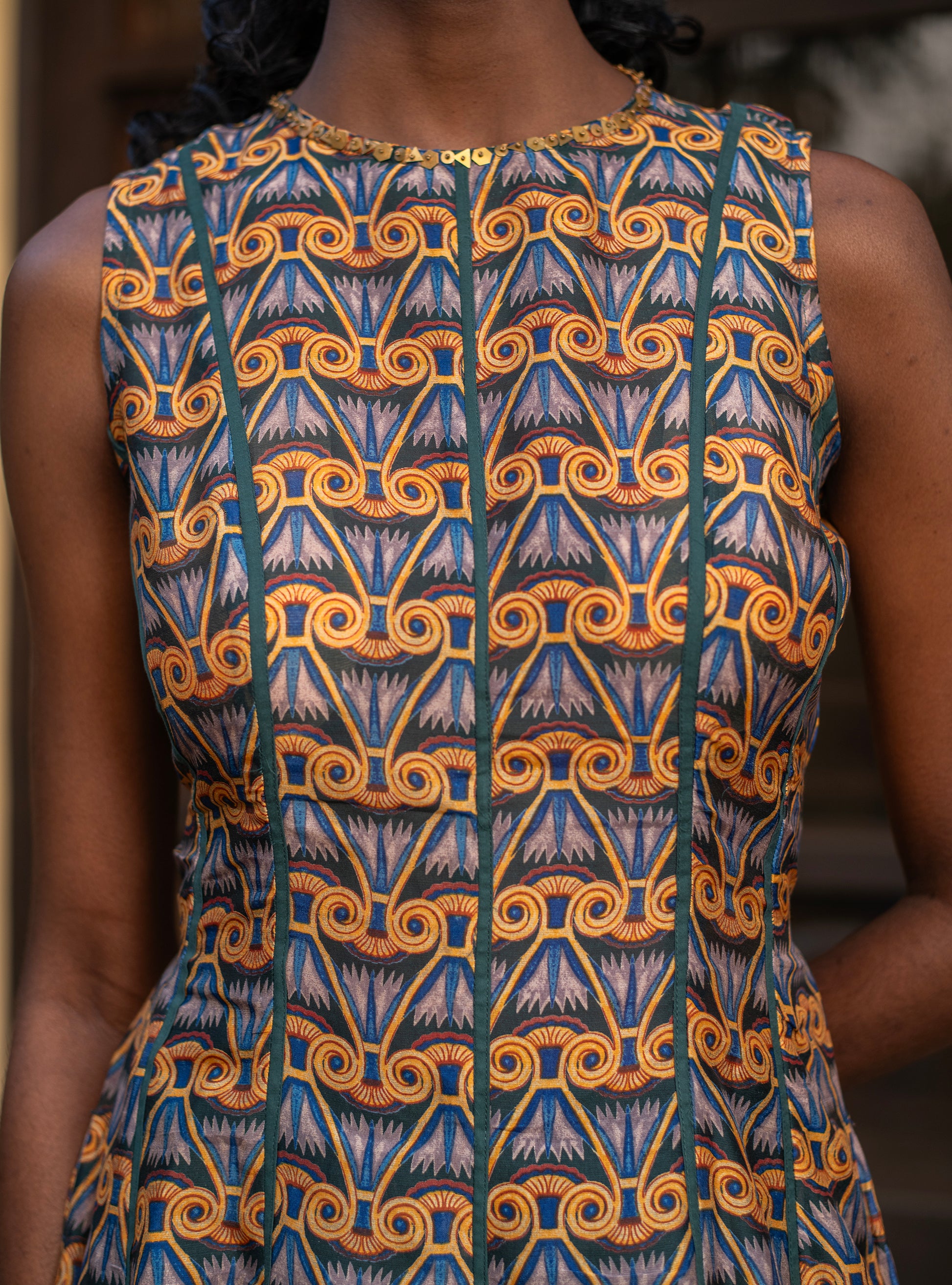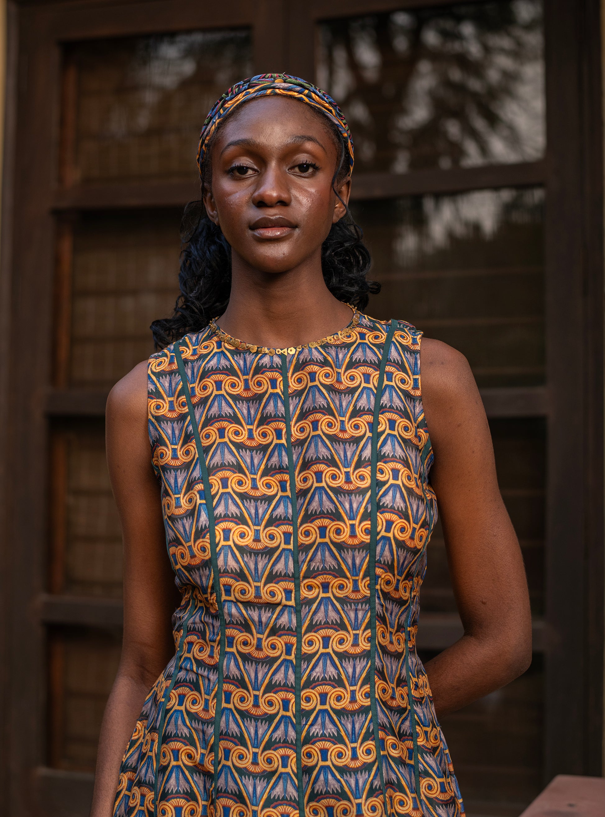 Crafted from luxurious Chanderi fabric in a captivating emerald hue, the Esna Dress embodies timeless elegance with contemporary appeal. This sophisticated piece features the refined drape and subtle sheen characteristic of traditional Chanderi weaving, creating an effortlessly graceful silhouette. The Faiyum emerald tone—inspired by ancient Egyptian aesthetics—offers a jewel-toned richness that complements a range of skin tones and occasions. Perfect for elevated everyday wear or special events, this dress combines heritage craftsmanship with modern design sensibilities. The breathable Chanderi construction ensures comfort throughout the day while maintaining its structured, polished appearance.