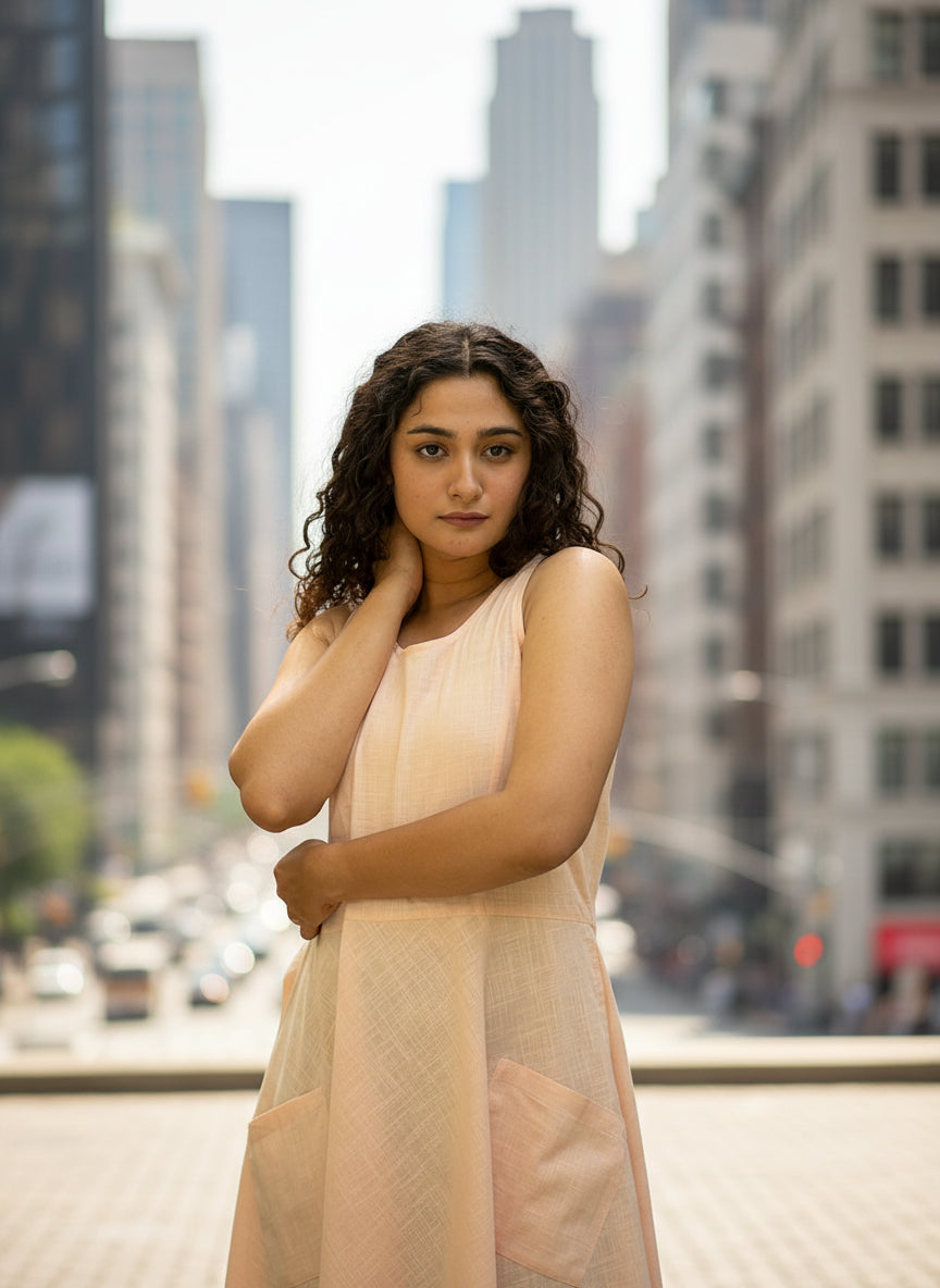 The Sandy Dress in Slub Rose combines understated elegance with tactile sophistication. Crafted from slub fabric—a natural textile characterized by subtle irregularities in the weave—this piece offers visual depth and authentic character. The rose hue delivers a warm, versatile neutral that transitions seamlessly from season to season. The relaxed silhouette provides comfortable movement while maintaining a refined aesthetic, making it an essential addition to any curated wardrobe. Perfect for layering or wearing solo, this dress exemplifies timeless design with contemporary sensibility.