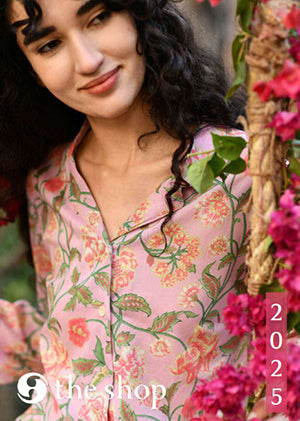 The Lookbook 2024 focuses on shades of pastels and block prints, highlighting the inclusion of Ajrakh—natural dyed fabrics merged with European prints—and the much-anticipated Coffee Collection. This collection brings a fresh and elegant aesthetic to both home and clothing lines.